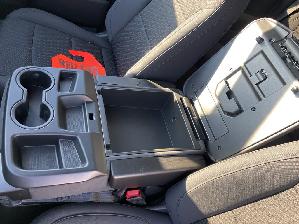- Seats, front 40/20/40 split-bench with covered armrest storage and under-seat storage (lockable) (STD)