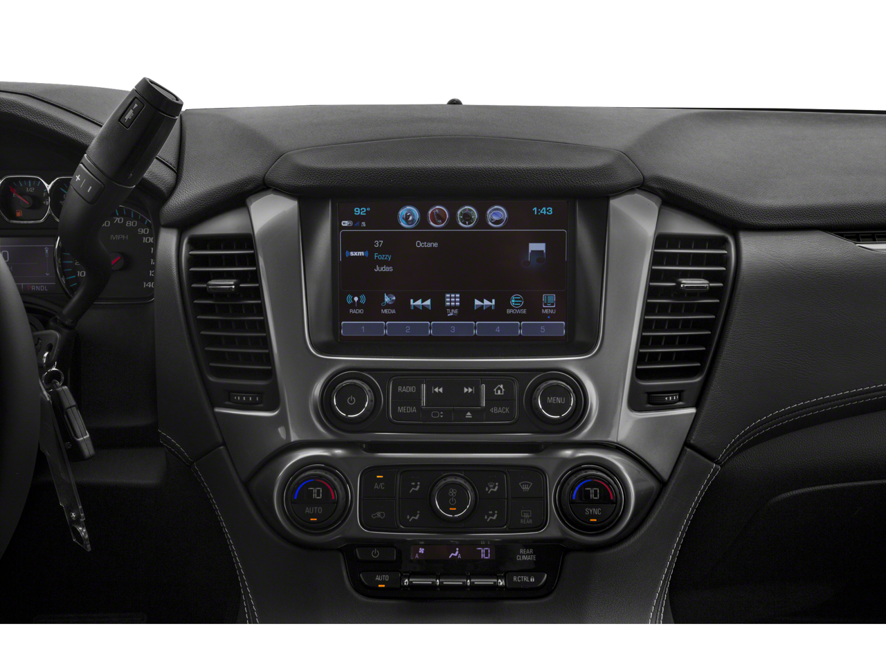 Sun. Entertainment and Destinations Package: Chevrolet Infotainment AM/FM Stereo with Navigation; Rear Seat Blu-Ray/DVD Entertainment System; Power Sunroof. Luxury Package: 2nd Row Power Release 60/40 Split Folding Bench Seat; Heated 2nd Row Seats; Hands Free Power Liftgate; Heated Leather Wrapped Steering Wheel; Memory Settings; 3rd Row 60/40 Power Fold Split-Bench; Front and Rear Park Assist; Power-Folding Heated Outside Mirrors; Lane Change Alert with Side Blind Zone Alert; Power Tilt and Telescopic Steering Column with Memory; Passive Entry System; Fog Lamps; Rear Cross Traffic Alert; Push Button Keyless Start. Preferred Equipment Group 1LT: Memory Settings; Leather-Appointed Seat Trim; Remote Vehicle Start; Power Liftgate; Rear Park Assist with Audible Warning; Floor Console; Front Passenger 6-Way Power Seat Adjuster; 7. 300 lbs (3. 311 Kgs) GVWR; Enhanced Driver Alert Package; Driver Inboard and Front Passenger Airbags; Universal Home Remote; Color-Keyed Carpeting Floor Covering; Extended-Range Remote Keyless Entry; 2nd Row 60/40 Split-Folding Manual Bench; Bos