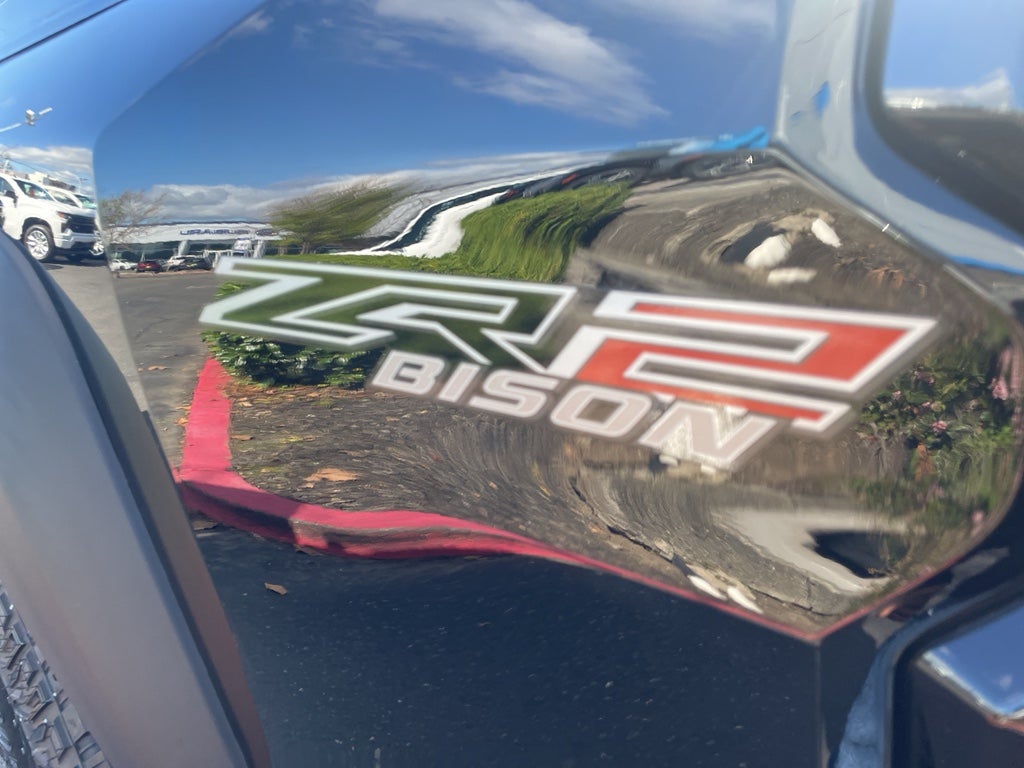 ZR2 Bison Edition: AEV Wheel Flares; Multimatic Jounce Control Dampers; AEV Heavy Duty Stamped-Steel Front Bumper; Bed-Mounted Vertical Spare Tire Carrier; AEV Rear Differential Skid Plate; LT315/70R17 Blackwall Tires; AEV Transfer Case Skid Plate; 17" Beadlock Capable Carbon Flash Metallic Wheels; LT315/70R17 Blackwall Spare Tire; 17" Beadlock Capable Carbon Flash Metallic Spare Wheel; 1st and 2nd Row All-Weather Floor Liner; AEV Heavy Duty Stamped-Steel Rear Bumper; AEV Fuel Tank Skid Plate; AEV Front Skid Plate. Safety Package: Blind Zone Steering Assist with Trailering; Rear Cross Traffic Braking; Rear Park Assist. Preferred Equipment Group 4ZR: Rear-Window Electric Defogger; ZR2 Off-Road Package; Electronic Automatic Cruise Control; Chevy Safety Assist. Power Sliding Glass with Manual Shade Sunroof. Removable Front and Rear Off-Road Assist Steps. 1st and 2nd Row All-Weather Floor Liner. Front License Plate Kit. **Equipment listed is based on original vehicle build and subject to change. Please confirm the accuracy of the included equipment by calling the dealer prior to purch